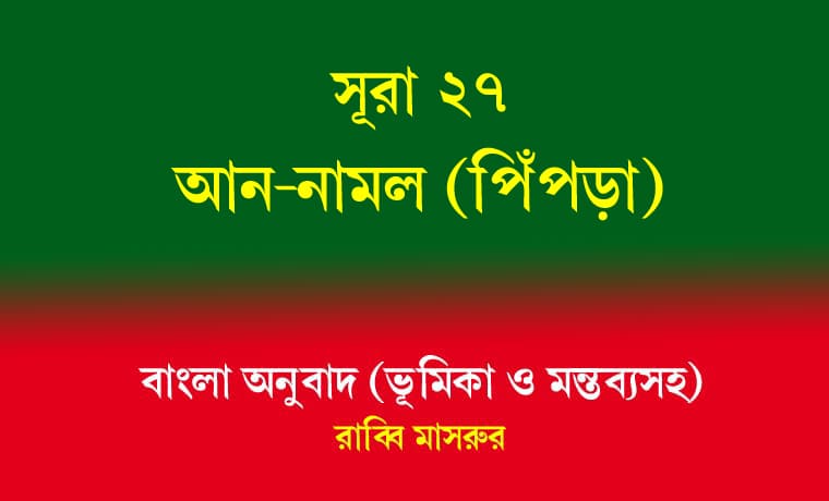 প্রশ্ন ২. সূরা ২৭ কে আন-নামল (পিঁপড়া) কেন বলা হয়?