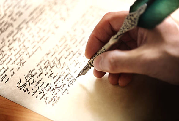 There are various types of pens, such as fountain pens, ballpoint pens, pencils, wooden pencils, quill pens, reed pens, and ink pens. Among these, the reed pen is considered the most ancient. In the early days of writing, people used long metal strips like reeds as pens. They wrote on materials like stone or clay tablets using these pens. After paper and similar materials like papyrus, tree bark, and animal skin were invented, people started using ink pens. Clear evidence of ink pen use has been found in ancient Egypt. Ink pens dominated for a long time, likely from around 2000 BCE to the 19th century. Ink pens were made by cutting a kind of flexible reed into a six or seven-inch piece and sharpening it to write on paper, skin, tree bark, or papyrus.