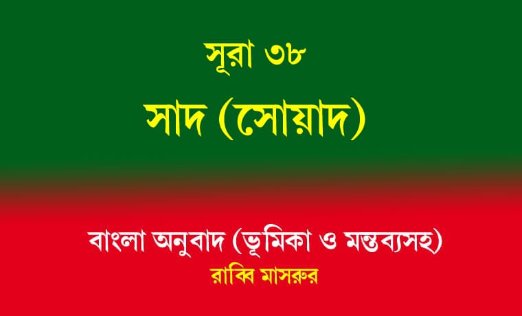সূরা ৩৮, যার শিরোনাম “সাদ” , পবিত্র কুরআনের একটি মক্কা সূরা। এতে ৮৮টি আয়াত রয়েছে এবং এর নামকরণ করা হয়েছে আরবি অক্ষর ‘ص’ (সাদ) থেকে, যা সূরার শুরুতে প্রদর্শিত হয়। অনেক মক্কা সূরার মতো, এর কেন্দ্রীয় বিষয়বস্তু আল্লাহর একত্ব, নবী মুহাম্মদ (সাঃ) এর প্রতি অবতীর্ণ বাণীর সত্যতা এবং সত্য প্রত্যাখ্যানের পরিণতি সম্পর্কে।