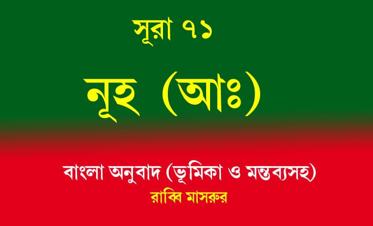 ১. নিশ্চয়ই, আমরা নূহকে তার জাতির কাছে প্রেরণ করেছিলাম এই বলে যে, “তোমার জাতির উপর যন্ত্রণাদায়ক আযাব আসার আগে তাদের সতর্ক করো।”